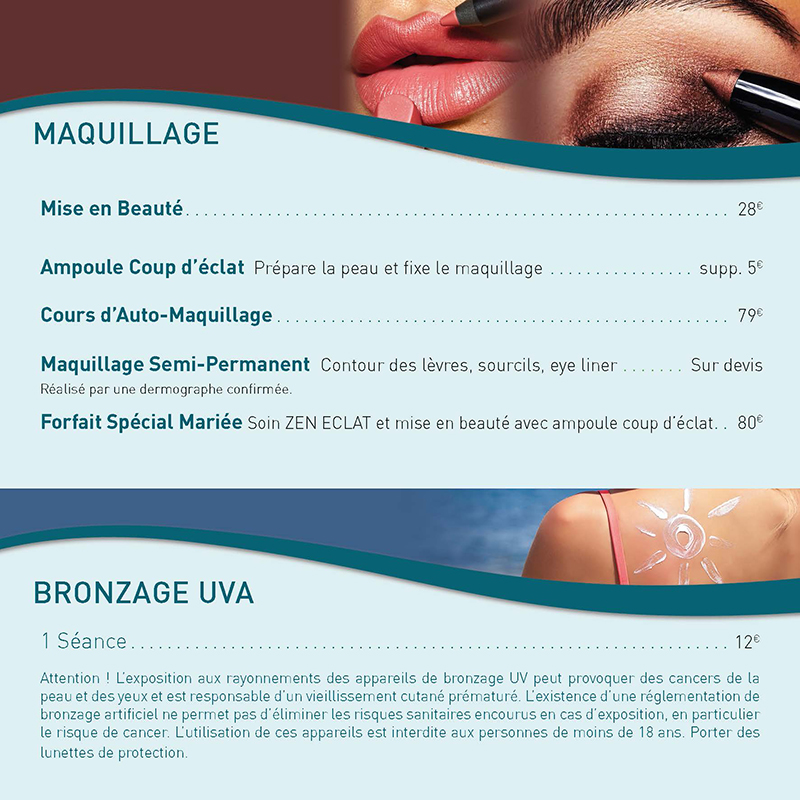 » Attention! L’exposition aux rayonnements d’un appareil de bronzage peut provoquer des cancers de la peau et des yeux et est responsable d’un vieillissement cutané prématuré. L’existence d’une réglementation du bronzage artificiel ne permet pas d’éliminer les risques sanitaires encourus en cas d’exposition, en particulier le risque de cancer. L’utilisation de ces appareils est interdite aux personnes de moins de 18 ans. Porter des lunettes de protection fournies. «